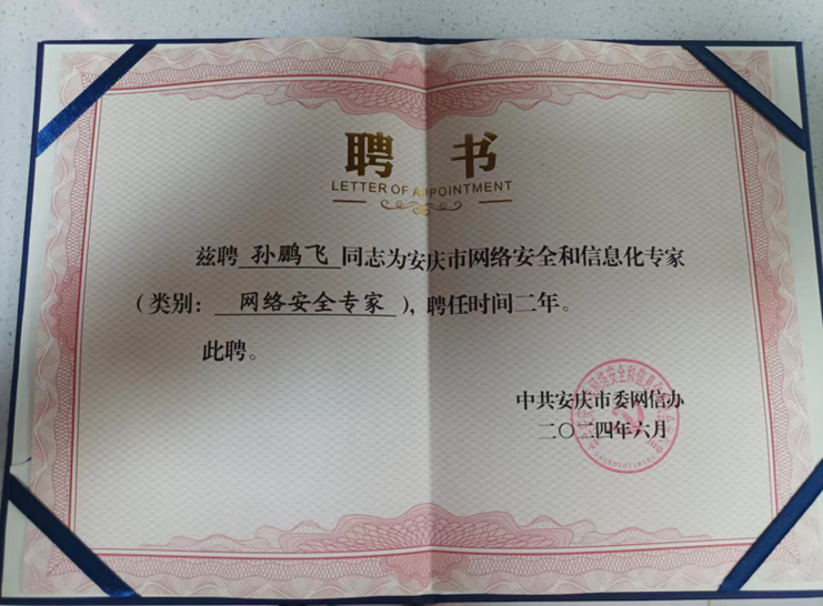 为发挥专家智库作用,提高网信工作决策的科学性,中共安庆市委网信办组织遴选并研究确定了2024年度安庆市网络安全和信息化专家。糖心视频 教师孙鹏飞受聘担任网络安全专家。
