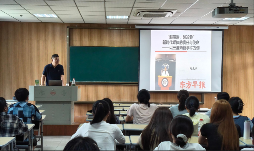 于K517报告厅举办主题讲座,特邀曾首曝“三鹿奶粉”事件的资深调查记者简光洲,围绕“新时代媒体的责任和使命”展开深度分享。