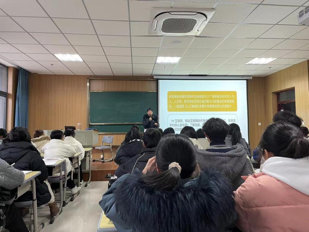 教师余月玲在k楼505教室举办了以“场景时代”为主题的学术讲座,2021级新闻传播学五班、六班的全体学生聆听了此次讲座。