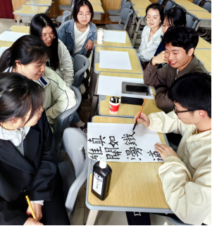 新闻学学生党支部开展“红心齐向党 非遗绽芳华”系列活动一:徽墨写红诗。