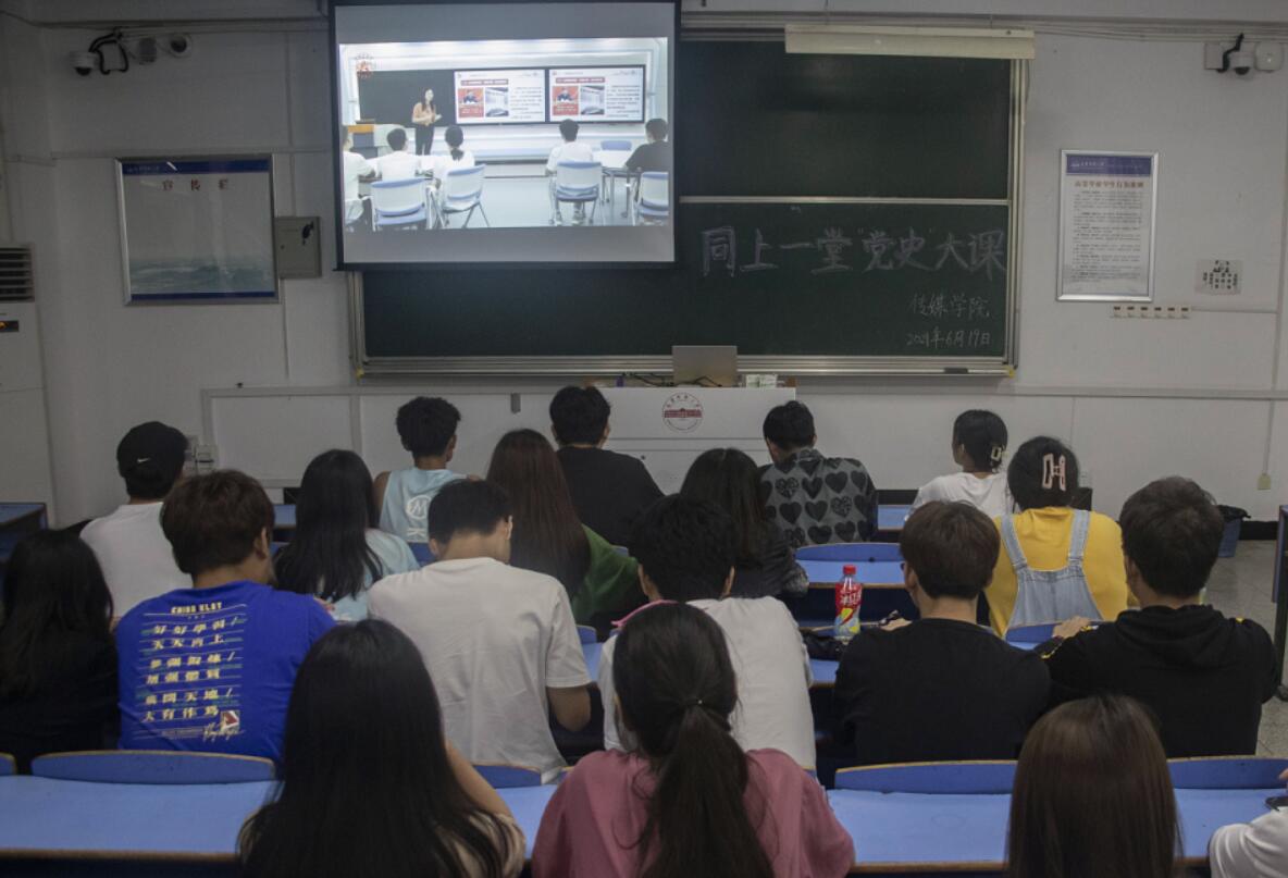 在文津楼305教室组织学生观看全省师生同上一堂“党史”课。