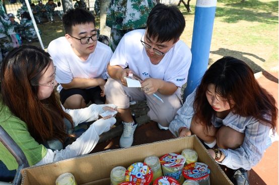 在新生喝柠檬水休息间隙,学长学姐们和他们坐在一起亲切交谈,分享军训发生的趣事和传授军训心得。“我们去年军训,有学长学姐给我们送来了冰棍解暑,今年军训时间长,我们也想让学弟学妹们成为有人挂念的幸福小孩。”谈及送水解暑的原因,史佳琪说。(撰稿:学生记者 刘子阳 李婷 摄影:学生记者 尹昌丹 岑富叶 审核:张万茂)
