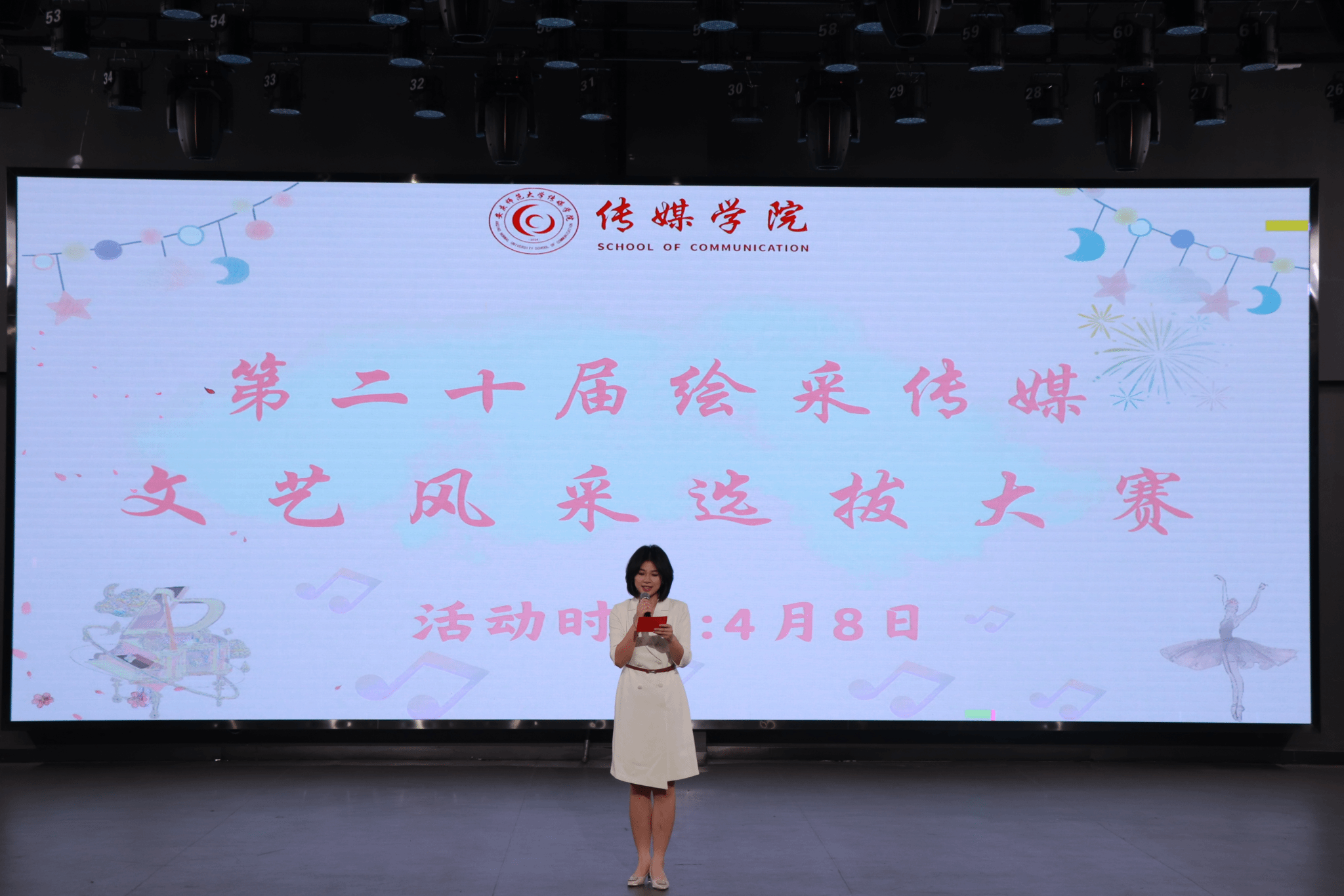 于K楼演播厅举办第二十届“绘采传媒”文艺风采选拔大赛。学院主席团成员、各级大众评委及演员和部分学生代表参加了此次活动。