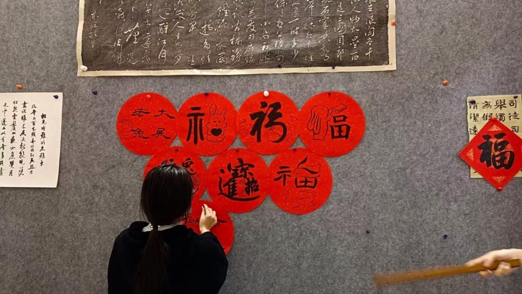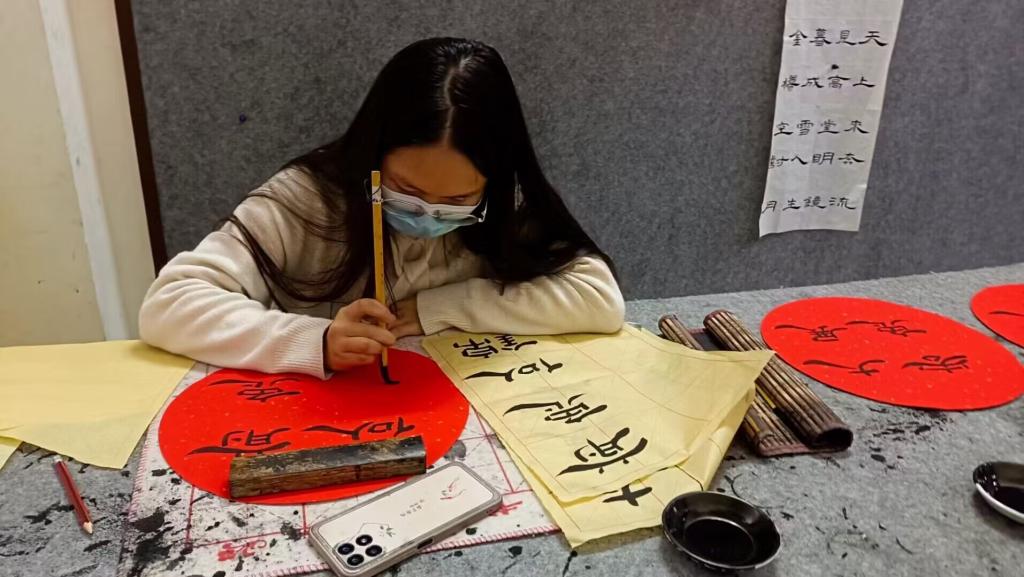 学习书法与绘画近七年时间,上高中时,温杨萍经常会将手写的书画作品赠送给自己的授课老师。为表达对学院老师们的感谢,两个月前,温杨萍就有了手写新年语的计划。“老师们非常喜爱传统文化,我想延续给老师送祝福的传统,让新年更具有仪式感。”温杨萍说。