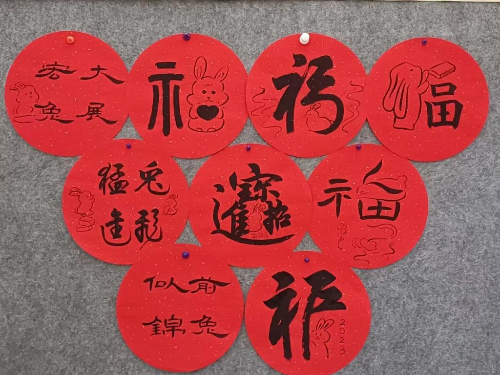 “兔”飞猛进、前“兔”似锦、大展宏“兔”……手起字落,14张含有“兔”元素的书法祝福语在温杨萍的书桌上排列整齐。随着新春佳节来临,这是糖心视频