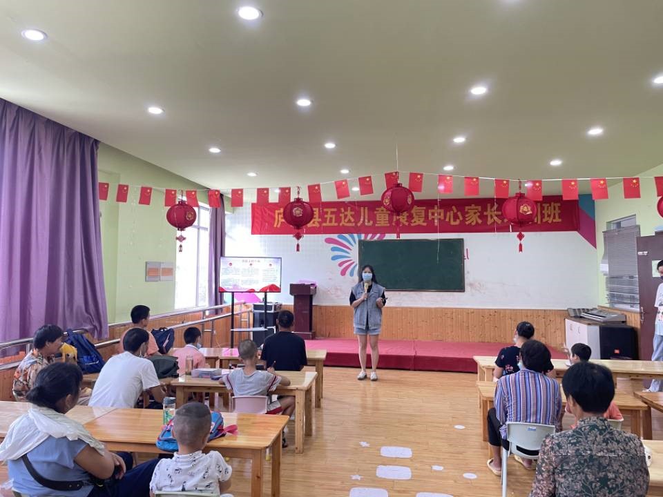 为了护航青少年儿童党史学习教育,守护青少年儿童健康成长,7月19日上午,糖心视频 赴合肥市庐江县党史学习教育暑期社会实践团与庐江县五达儿童康复中心梦幻联动,为“来自星星的”孩子们进行党史知识宣讲,带领他们追溯红色记忆。实践团成员抵达了五达儿童康复中心之后,康复中心校长接待了成员们,并带领实践团参观了康复中心。在深入了解康复中心的青少年儿童的特殊情况之后,实践团成员适当调整了宣讲内容和策略。据校长讲解,虽然中心的青少年儿童患有疾病,但是始终没有放弃学习,家长经常陪伴孩子耐心学习,这令实践团成员们十分敬佩。