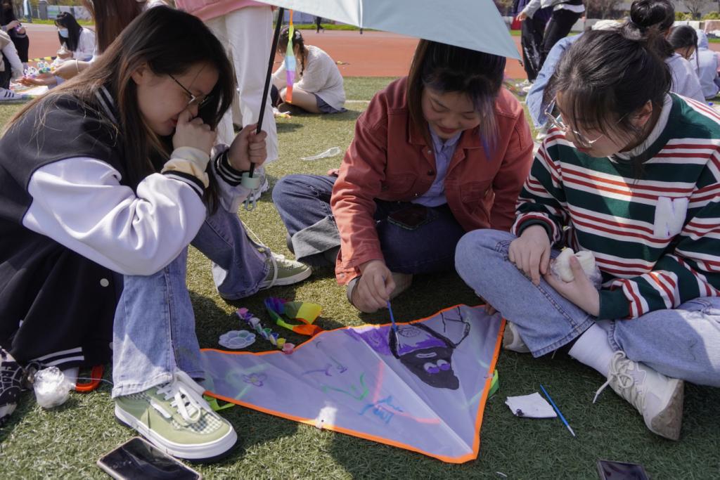 海绵宝宝系列卡通、宿舍人物自画像、春日氛围小红花......4月3日糖心视频 的170余名学生“集结”东门操场,他们手握画笔,心系蓝天,定制着专属风筝,“沉浸式”的风筝体验券让学生们直呼“过瘾”!