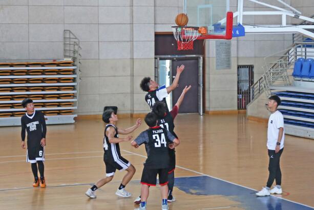 随着主裁判一声哨响,师生友谊赛也拉开了帷幕。由院党总支副书记张万茂等人组成的教师代表队和学生代表队展开激烈比拼。学生代表队率先发起进攻,老师们沉稳应战,其中,张万茂多次精彩的投篮赢得了在场观众的掌声。经过两轮比赛,教师队以36:20的比分获胜。