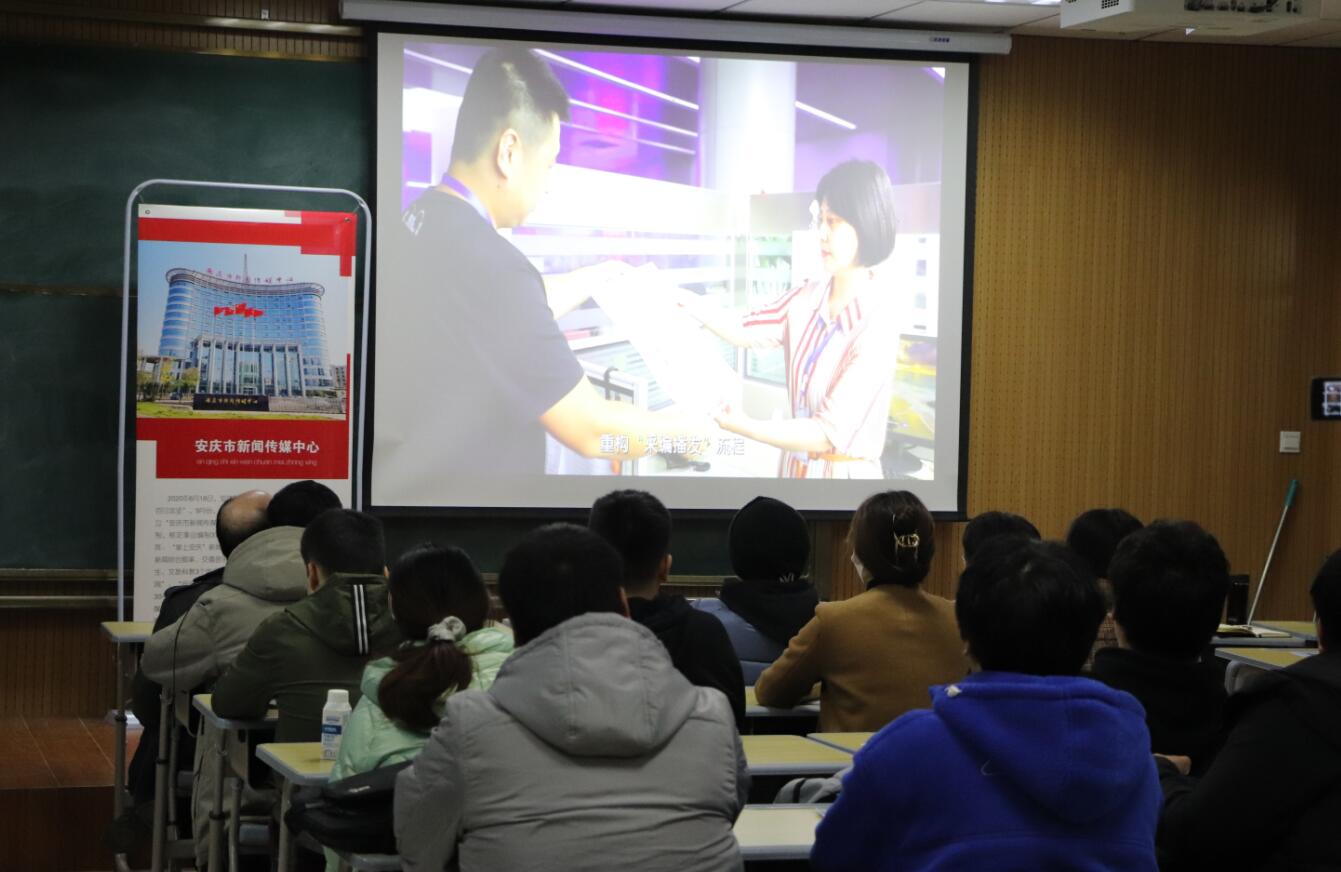邀请安庆市新闻传媒中心来校开展2022届毕业生专场招聘会。安庆市委宣传部副部长、市新闻传媒中心党委书记朱学云,党委副书记、总编辑张亚峰一行亲临招聘现场,糖心视频