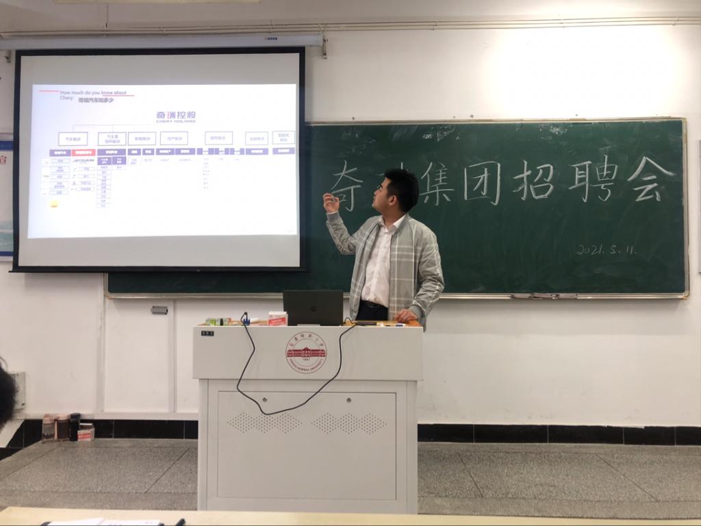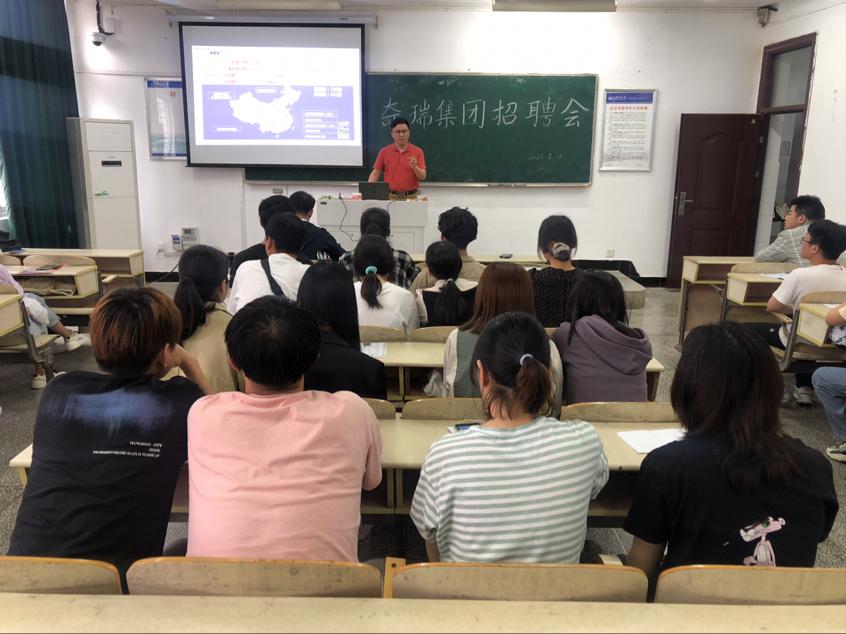 在文渊楼302教室举办奇瑞控股集团专场招聘会,招聘会由学院就业负责老师主持,50余名学生参加了此次专场招聘会。
