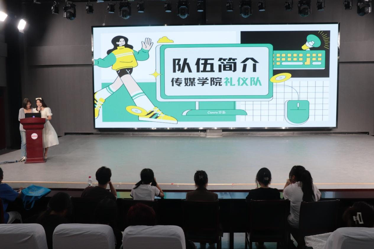 学院团委各中心、各队伍负责人依次上台,以PPT和视频的形式向大家展示各自部门的情况。青年科技创新中心的活动举办、青年文艺中心的晚会布置、新媒体中心的拍摄写稿……各中心形式多样的介绍吸引了新生们的目光,各中心介绍的最后都会放出招新群的二维码,新生们也纷纷拿出手机,扫码加入自己感兴趣的中心和队伍。