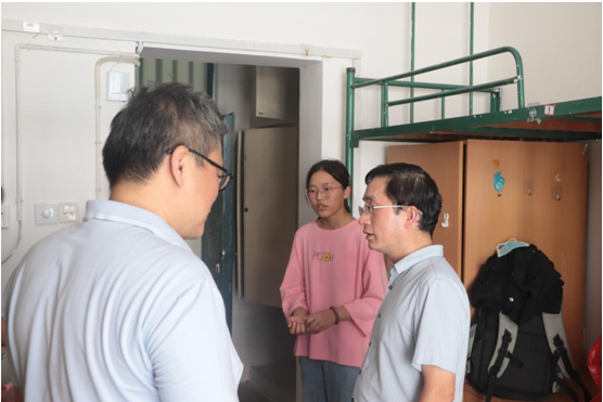 党委书记詹德全、副院长王业明、党委副书记张万茂,以及新生辅导员一起走访了2022级新生宿舍。