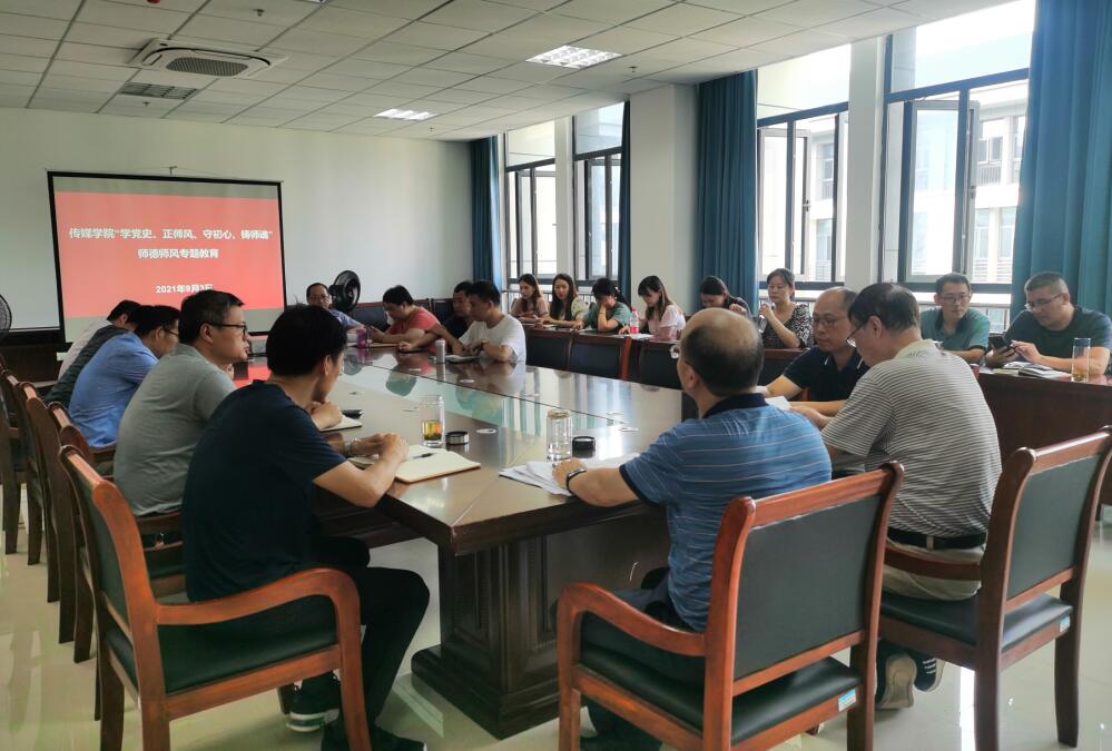召开新学期全体教职工政治理论学习会,专题开展师德师风教育,学院全体教职工参加学习,会议由学院党委书记韦长发主持。