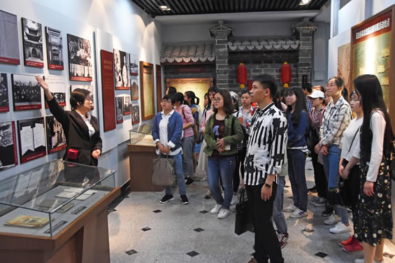 陈独秀的生平事迹和革命故事以图片和展示牌的形式展示在墙上,陈列柜里摆放的陈独秀先生的手稿和书法作品给学生们了解陈独秀带来了更加直观的感受,他们从中体会到了中国共产党的蓬勃发展。“到纪念馆实际参观的教学方式让人印象非常深刻。”网络与新媒体专业2015级张江梦晗是第二次来到独秀园,她认为这次的党课实践教学让她对陈独秀的生平事迹和党的历史有了更加深入的了解。