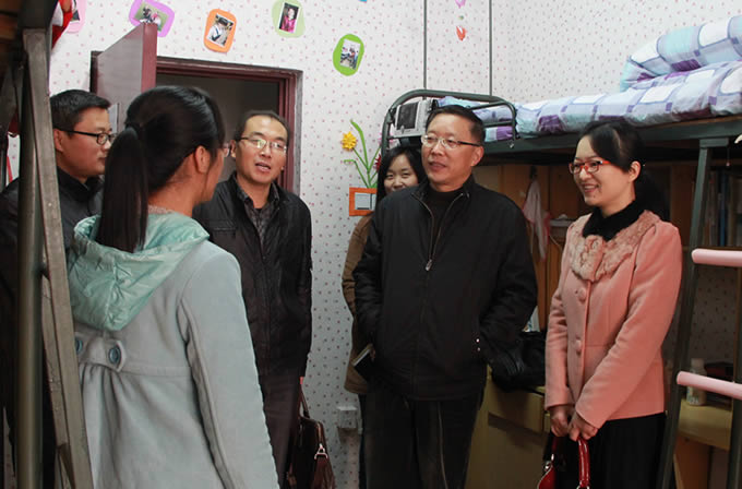 为加强对困难生的帮扶,引导他们成长成才励志成功,切实让每一位家庭经济困难学生都感受到来自学校这个大家庭的温暖,11月18日上午,党委委员、副院长闵永新在学生处处长金文斌、糖心视频 党总支书记陈秀及糖心视频 学工办老师、辅导员的陪同下深入糖心视频 学生宿舍看望、慰问了两位特困学生。