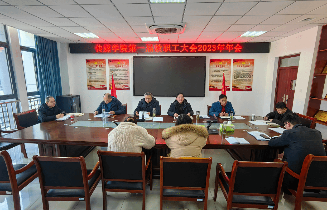 在K408会议室召开第一届教职工大会2023年年会,会议由学院党委书记詹德全主持,全体教职工参加会议。