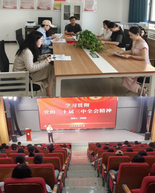 党委书记詹德全、副院长王业明、党委副书记张万茂、副院长文继奎分别结合分管和联系工作向不同群体宣讲党的二十届三中全会精神。