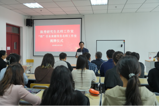揭牌仪式上,詹德全宣读了省委教育工委和省教育厅关于两个名师工作室成立的批复文件并代表学院党委对两个省级名师工作室的成功获批表示祝贺。陈秀代表名师工作室对学院党委一直以来的关心与支持表示感谢,表示工作室将树牢为学生成长赋能的宗旨,充分发挥平台优势、人才优势、专业优势,为学院高质量发展和学生培养质量提升做出更大贡献。