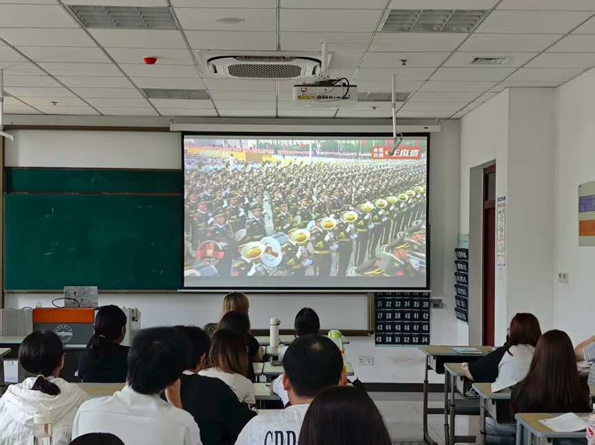 党政领导班子成员与师生代表近百人齐聚学院演播厅,通过直播镜头共同见证这一承载历史记忆、凝聚民族力量的重要时刻。