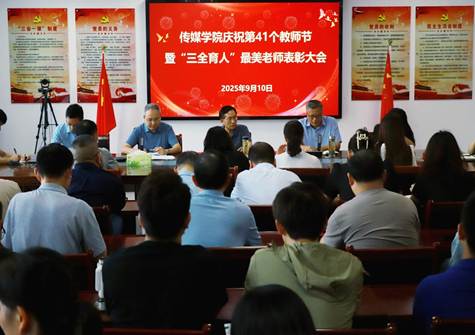 庆祝第41个教师节暨“三全育人”最美教师表彰会在K408会议室热烈举行。学院班子成员和全体教师齐聚一堂,共度节日,四位获奖教师领取了荣誉证书。