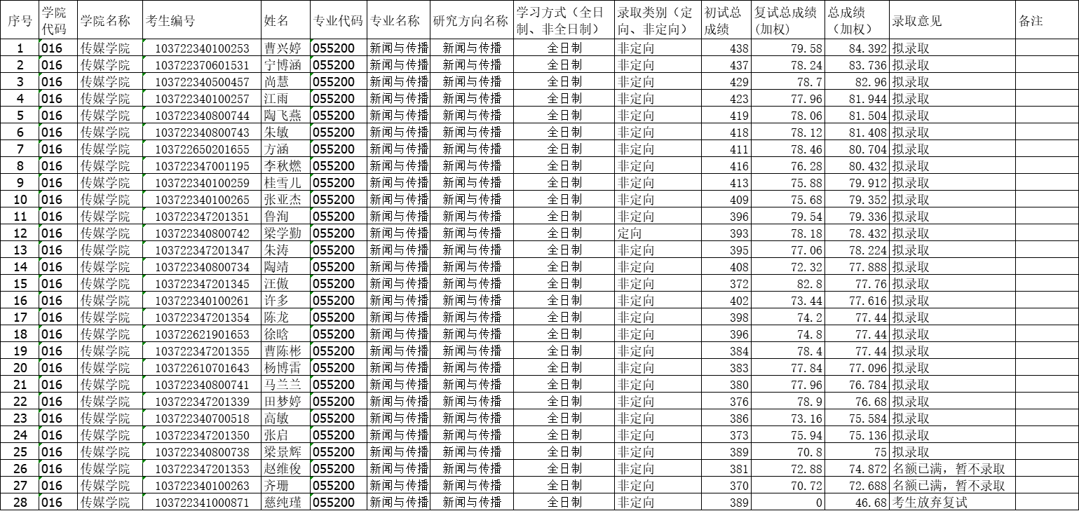 根据《糖心视频 2022年硕士研究生招生复试录取办法》等规定,现将新闻与传播专业硕士点2022年研究生复试结果及拟录取名单公示10天,公示时间从2022年4月10日开始。如有问题,请及时向学校研究生复试录取督查组反映,电话:0556-5300053,邮箱:[email protected]。