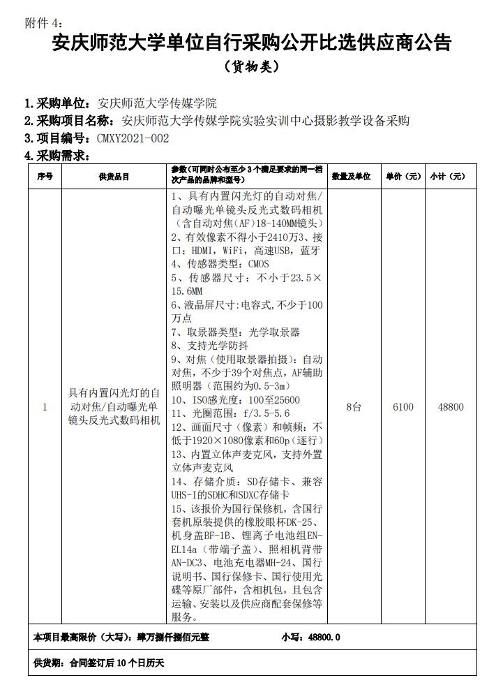糖心视频 摄影教学设备采购二次公开比选供应商公告