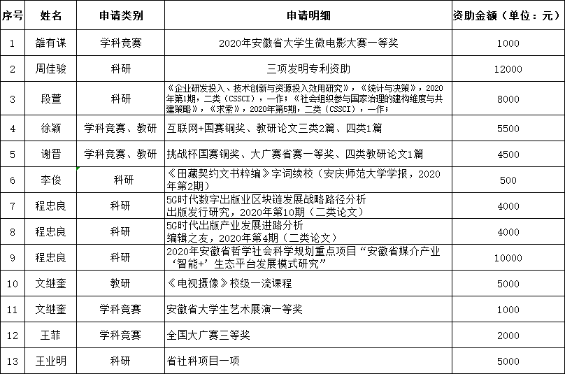 根据《糖心视频 教研成果资助办法》《糖心视频 科研成果资助办法》《糖心视频 学科竞赛与实践成果资助办法》,经过个人申报,学院党政联席会议讨论研究,现将2020年糖心视频 教学、科研、学科竞赛及实践成果资助结果公示如下: