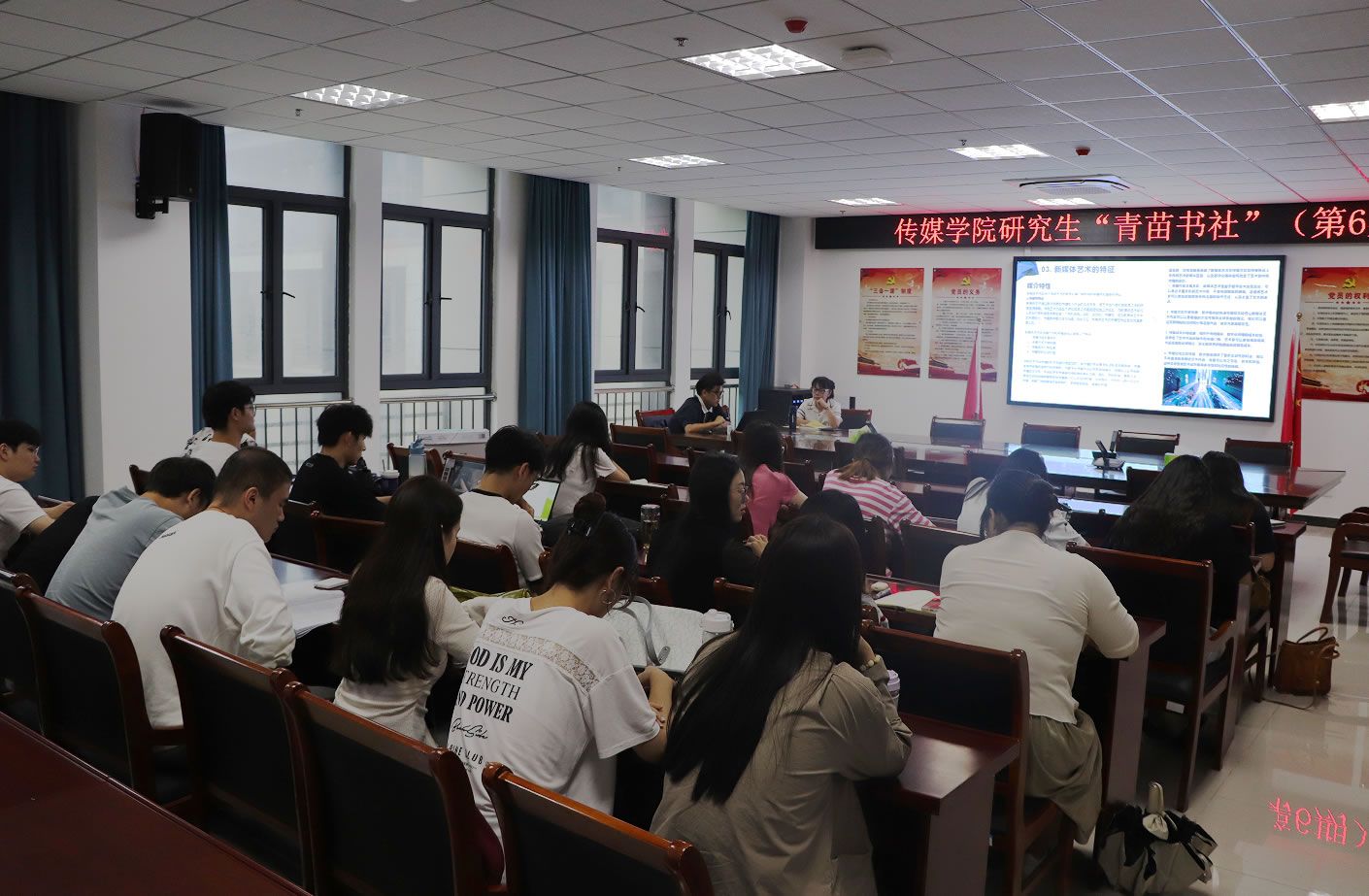 在K408开展“青苗书社”第六期活动。本期读书会的阅读书目为《新媒体艺术》和《千古文人侠客梦》,汇报人是22级新闻与传播专业研究生陈龙和赵维俊两位同学。读书会由研究生导师卓雅副教授主持,22级全体研究生参加。