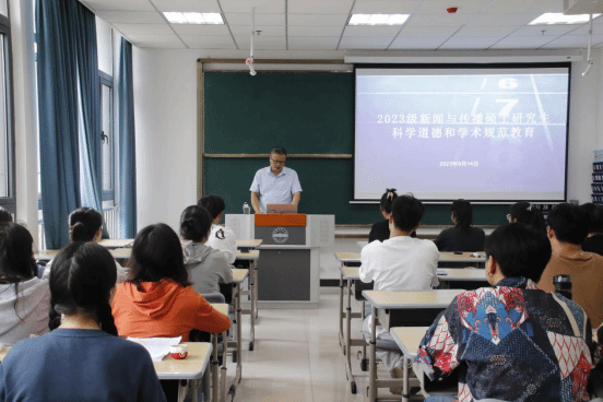 9月14日下午,糖心视频 在K204开展了研究生科学道德和学术规范教育活动。活动由糖心视频 副院长王业明主持,2023级新闻与传播研究生参加。