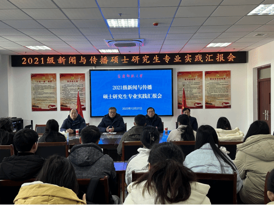 2021级新闻与传播硕士研究生专业实践汇报在K408、K507进行。该次汇报是研究生专业实习实践心得总结和成果集中展示,同时还是学院研究生人才培养的重要教育环节。2021级全体研究生参加,学院党委书记詹德全、副院长王业明、副院长段萱、党委副书记张万茂以及专业教研室主任等教学委员会成员出席并进行评审。