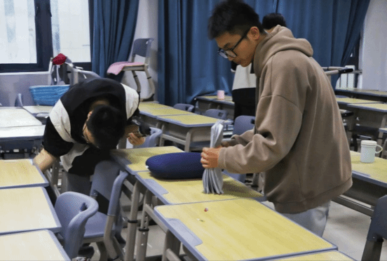 活动中,志愿者们各司其职,有序地开展工作。他们用抹布细致地擦净每一张桌面,使用扫帚和拖把将地面洗擦地干干净净,连角落也不忽视。此外,他们耐心地排列好散乱的桌椅,确保教室内每个空间都井井有条,焕然一新。