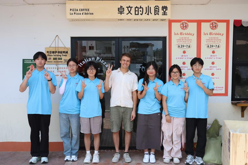 坐在幸福豆茶铺里,目光可以捕捉到对角的卓文的小食堂。与村庄一样的徽派建筑里,是不一样的“内芯”。店铺主理人是一位青年创客,名叫卓文,他来自美国,因此被亲切地称为“黄山的洋女婿”。小食堂的招牌美食是臭鳜鱼披萨和毛豆腐披萨,它们巧妙地融合了地方特色食材与国际餐饮元素。