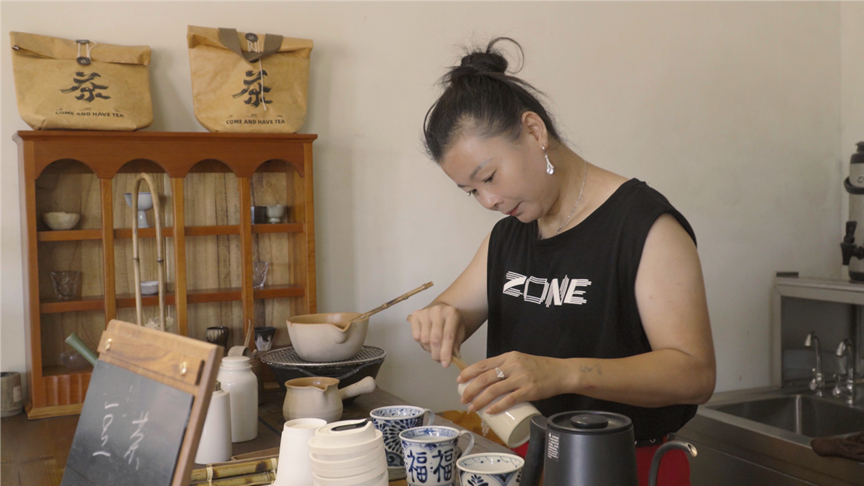 为更全面地了解南溪南村的新业态,团队成员前往位于南溪南村食尚街的幸福豆茶铺进行采访调研。茶铺位于街道拐角,白色的外墙上有大片栩栩如生的花朵作装饰。“有很多游客喜欢来到这里拍照留念。”主理人吴阿姨表示,店铺现在主要售卖豆茶与现磨咖啡两种饮品,并已开通外卖服务以满足顾客的不同需求,但并未涉及电商运营。