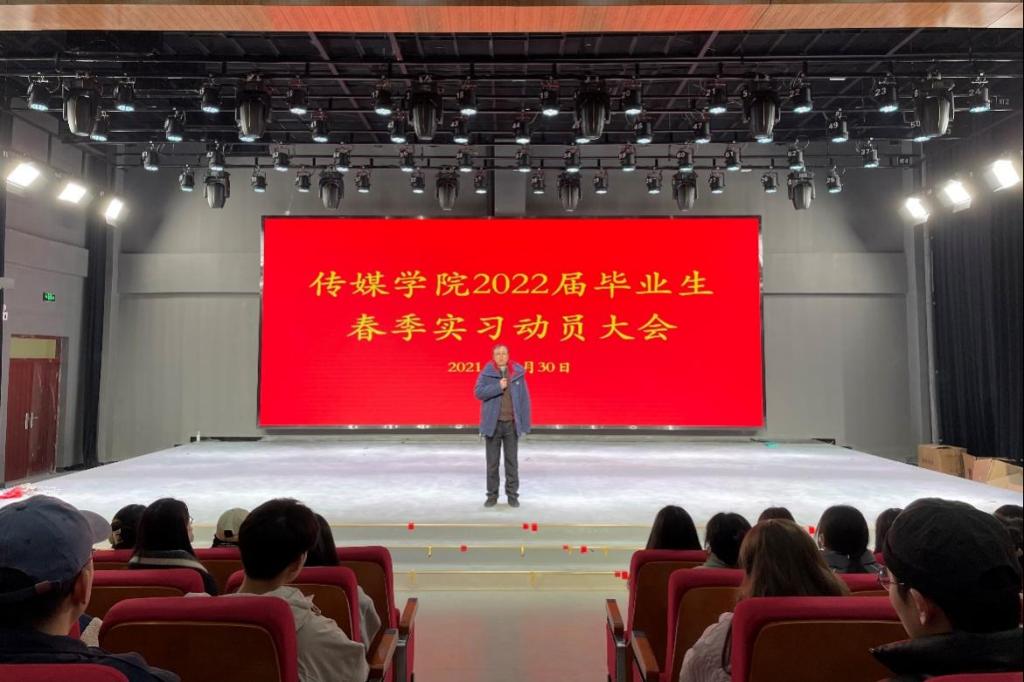 一直高度重视实习工作,此次实习联系了10余家媒体单位,为学生实习提供了充分的岗位保障。此次动员大会的召开,使2022届全体毕业生更加深刻地认识到实习的重要性,明确了实习的方向和目标,为毕业生实习工作的顺利开展和将来融入社会奠定了良好基础。(撰稿:孙达徽 摄影:张子毅 审核:张万茂)